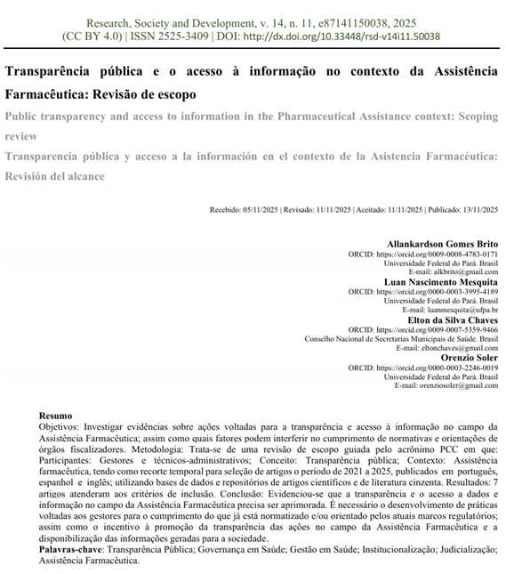 Palavras-chave: Governança; Gestão em saúde; Informação em saúde; Assistência farmacêutica; Medicamento.